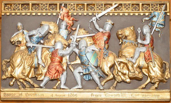 The Battle of Evesham (4 August 1265) was one of the two main battles of 13th century England's Second Barons' War. It marked the defeat of Simon de Montfort, Earl of Leicester, and the rebellious barons by the future King Edward I, who led the forces of his father, King Henry III. It took place on 4 August 1265, near the town of Evesham, Worcestershire.